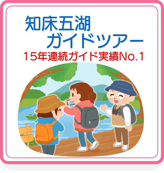 知床五湖では、混雑に伴う植生浸食、ヒグマ出没の危険と度重なる閉鎖による不安定な運用を解消するため、2011年より自然公園法による利用調整地区制度を柱とした新しい利用のあり方が始まりました。5月10日~7月31日までのヒグマ活動期は、知床五湖登録引率者の資格を持つ自然ガイドの引率ツアーへの参加が必要となりました。この期間は少人数で静かでゆっくり、散策をお楽しみ頂けます。(弊社のガイドは知床五湖登録引率者の資格を持っています。)