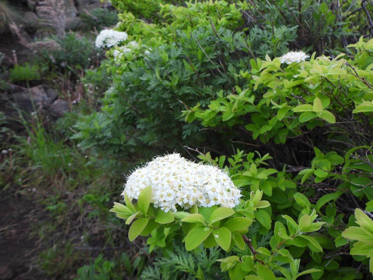 階段途中のエゾシモツケは花の数が一気に増えてきました。