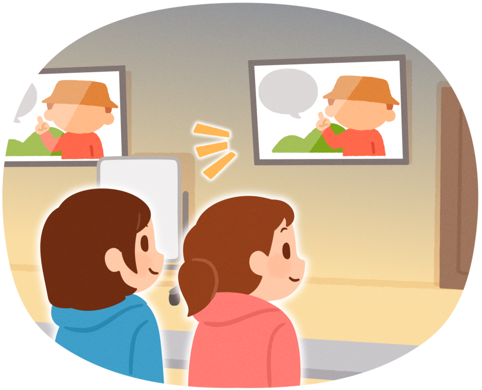 知床五湖フィールドハウスのレクチャールームでは、レクチャー映像をご覧いただきます。散策のためのルールやヒグマに遭った時の対処法などを勉強していただきます。